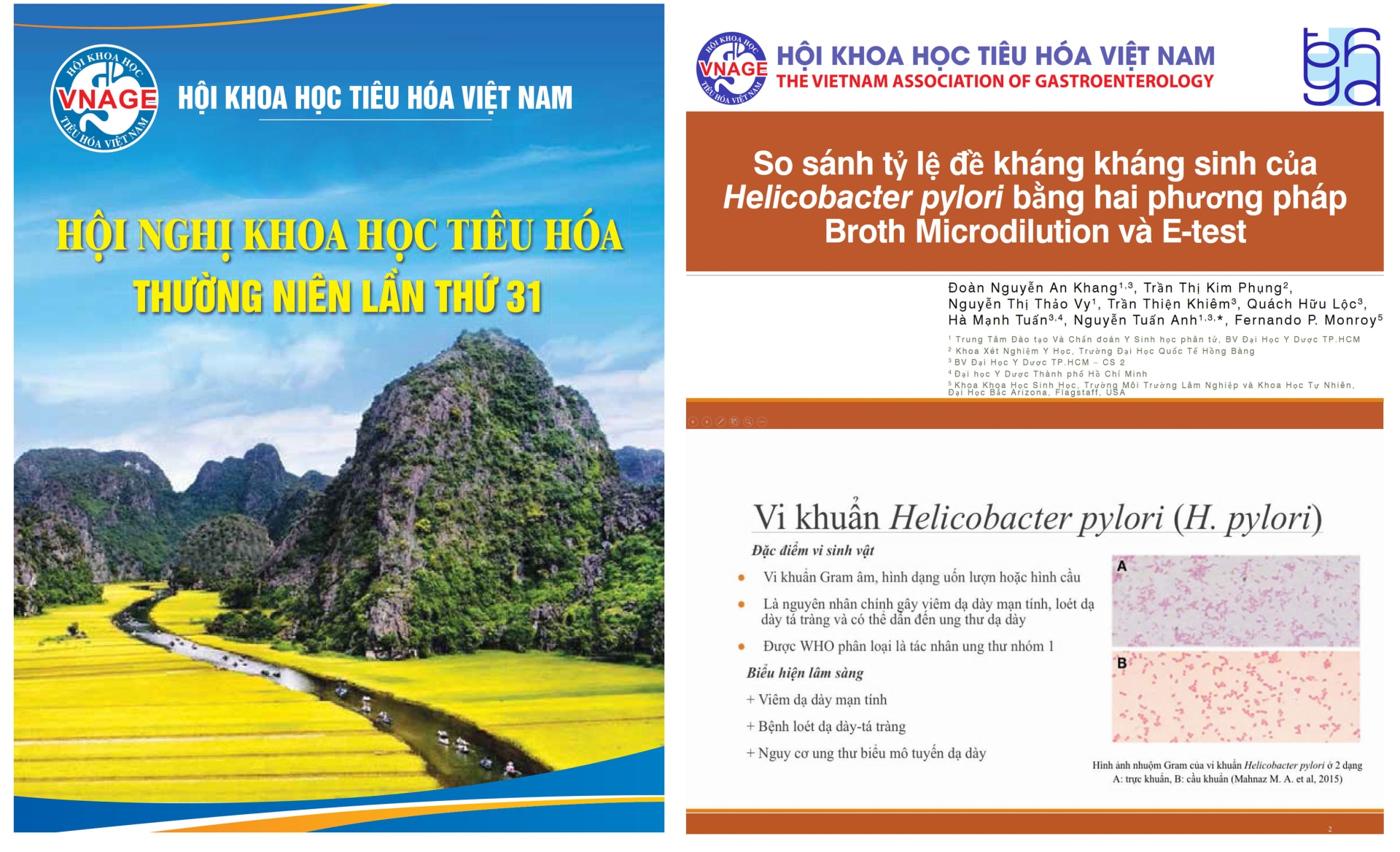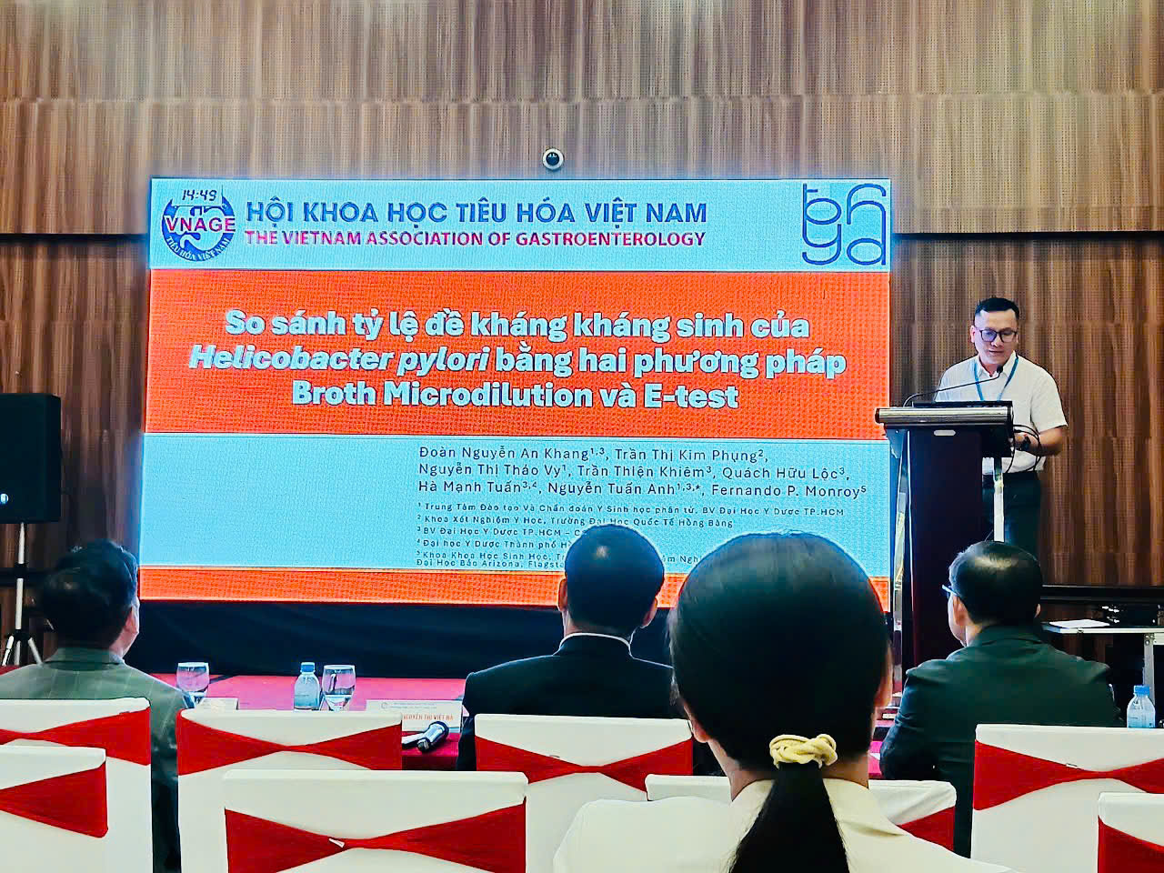Bệnh viện Đại học Y Dược Thành phố Hồ Chí Minh – Cơ sở 2 vừa công bố kết quả nghiên cứu khoa học với đề tài “So sánh tỷ lệ đề kháng kháng sinh của Helicobacter pylori bằng hai phương pháp Broth Microdilution và E-test”, được trình bày tại Hội nghị Khoa học Tiêu hóa Việt Nam lần thứ 31 (VNAGE 2025) tổ chức tại Ninh Bình. Nghiên cứu do nhóm tác giả gồm TS. Nguyễn Tuấn Anh, Đoàn Nguyễn An Khang, Trần Thiện Khiêm, Quách Hữu Lộc, Hà Mạnh Tuấn cùng các cộng sự thực hiện tại Trung tâm Đào tạo và Chẩn đoán Y Sinh học Phân tử, phối hợp với Trường Đại học Quốc tế Hồng Bàng và Đại học Bắc Arizona (Hoa Kỳ).